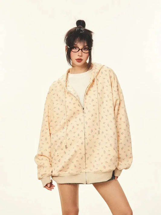 'Bloom' Soft Girl Floral Print Oversized Hoodie