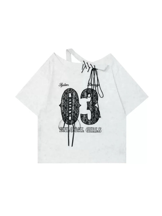 'Broken Dream' Blokette Spring Cotton Lace Slant Collar T-Shirts