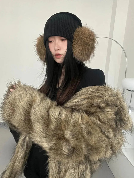 'Iceland' Y2k Fluffy Hood Vegan Fur Slavic Scarf