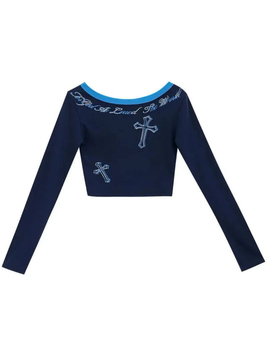 'Wish Me' Vintage Irregular Collar Cross Crop Shirts