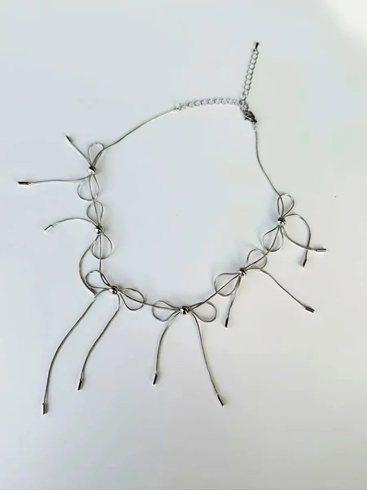 'Silver Ribbon' Ballet Core Coquette Ribbon Choker Necklace