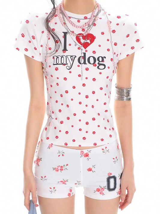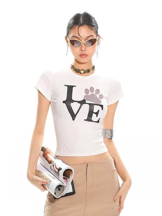 'Love' Y2k Rhinestone Puppy Paw Love Shirts