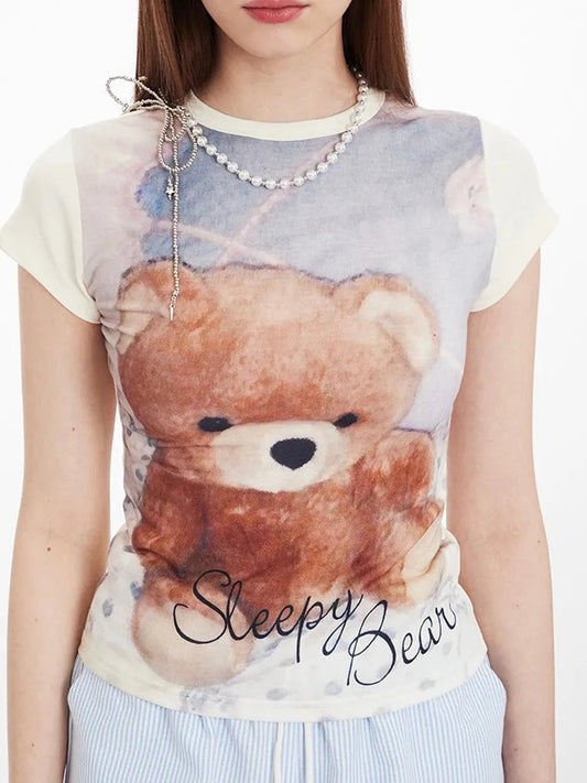 'Sleepy Bear' Coquette Girly Soft Crop Shirts