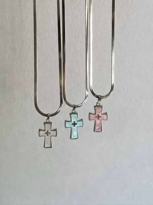 'Icy‘ Y2k Glitter Cross Pastel Titanium Necklace