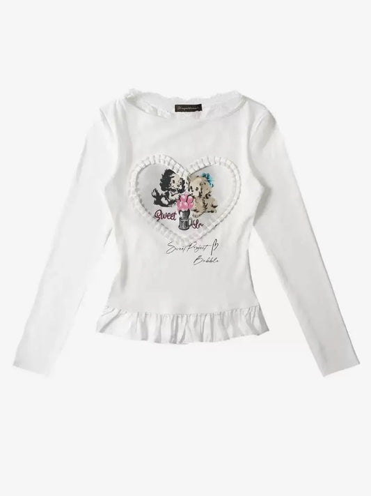 'Sweet Project' Coquette Spring Dog Prints Long Sleeve Shirts