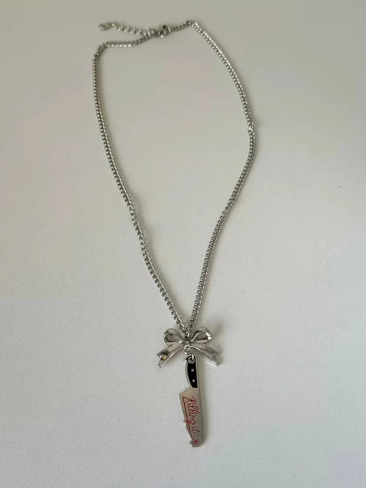 'Kiss Or Kill' Blade Ribbon Y2k Necklace