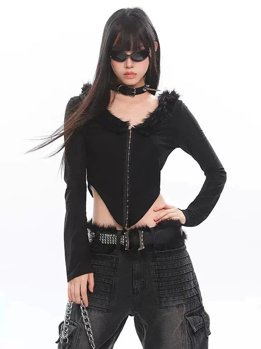’Roxane‘ Fluffy Trim V-Neck See Through Shirts