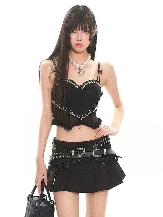 'Heartquake ' Y2k Coquette Ribbon Corset Cami Top