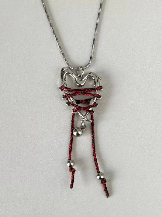 'Mess Minds' Punk Lace Up Heart Shape Necklace