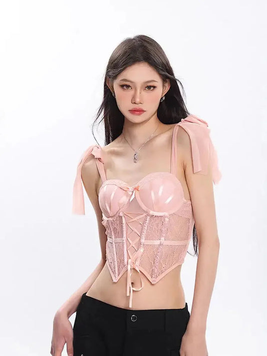 'Canned Peach' Valentie Sexy Chiffon Corset Cami Top