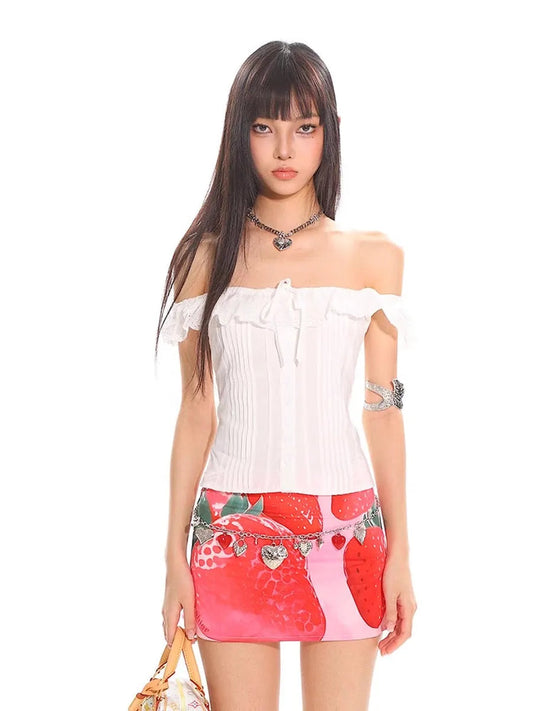 'Cecil‘ Y2k Boho White Ruffle Summer Shirts Blouse