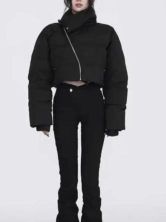 'Zero Degree' Grey Diagonal Collar Crop Puffer