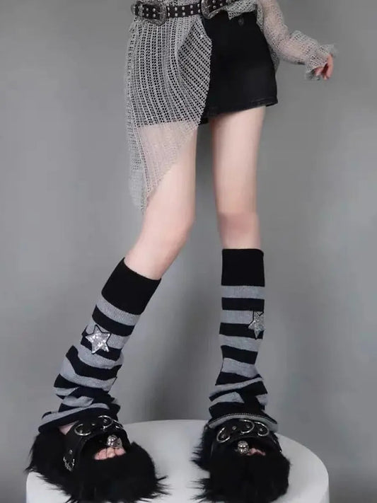 'Crepes' Kawaii Goth Striped Colorful Leg Warmers