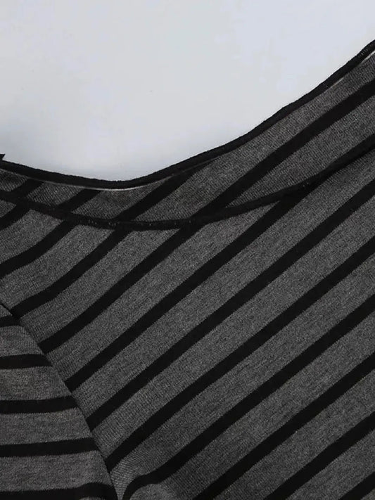 'Faded Time' Fall Acubi Striped Long Sleeve Off Shoulder Top