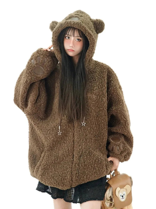 'Ginger Bear' Kawaii Streetstyle Fleeced Hoodie