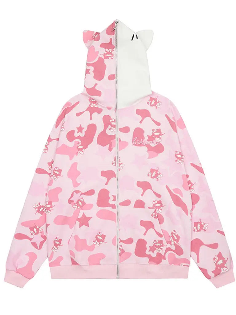 Features the cute kitty prints & vibrant color, this is your perfect anime-inspired hoodie coat!